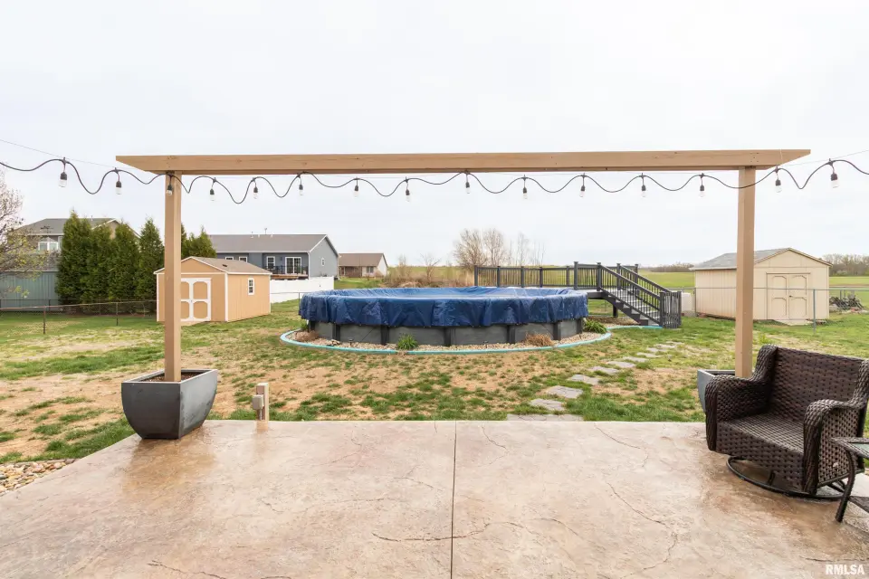 The wow factor starts the moment you open the door! Wood floors throughout the great room, dining and kitchen in 2022. New backsplash in the kitchen in 2022, appliances in 2020 and 2021. Baths remodeled in 2022 with an incredible primary bath and walk in closet. The quality continues as you continue to the basement that was custom finished in 2017. The basement offers a theatre room, workout area, two bedrooms, only one with an egress window, and an additional full bathroom. The exterior amenities have been updated with similar quality and detail. You will step out to a beautiful stamped concrete patio done in 2022. Follow the stone path to the huge composite deck and above ground pool added in 2024. Yard is landscaped with concrete edging, fenced and has a shed for more storage! When the sun goes down the house is a visual show piece with custom Asahom lighting in the soffit that adds to the wow factor! Garage floor has epoxy finish and wi-fi garage door capability. Did I mention OWNED solar? This 50 panel system is rated for 22,103 kwh of electrical production...you won't believe the affordability of the electric bills! New tankless water heater 2025. Everything is done and with quality! Hurry and make this your forever home!