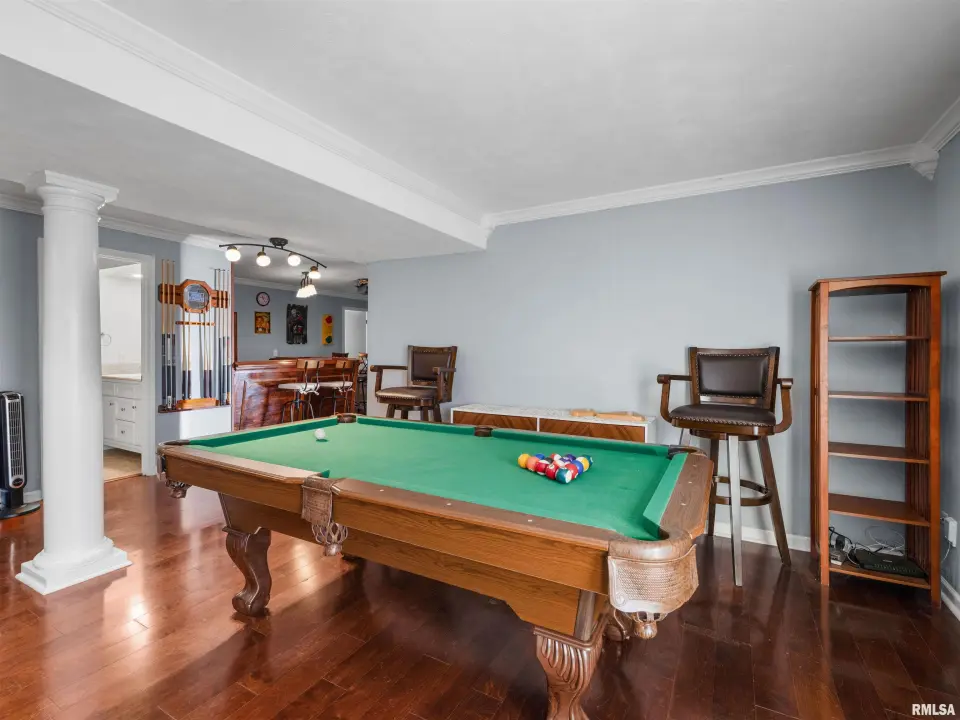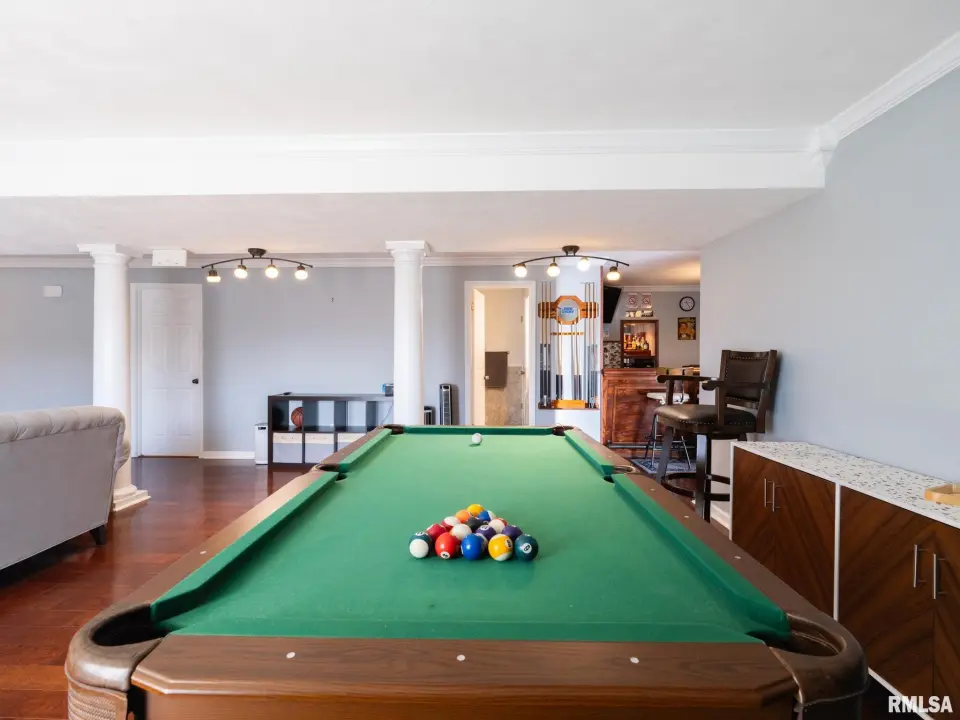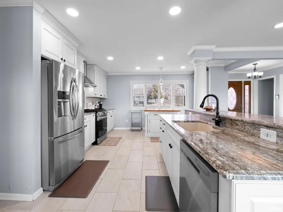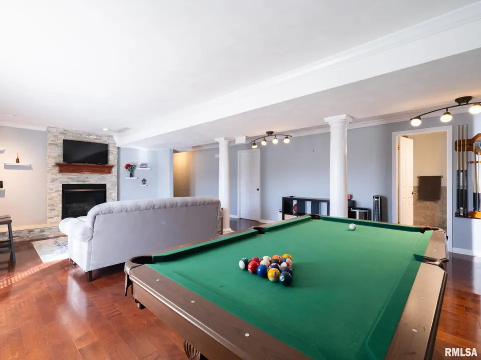 From the moment you arrive, you’ll love the unique stone courtyard that sets the tone for what’s inside. The open-concept main level is filled with natural light and features a spacious living and dining area with beautiful hardwood floors. The fully applianced kitchen offers granite countertops, an island, and stylish cabinetry—perfect for everyday living and entertaining. An additional main-level family room provides a cozy retreat with a fireplace, offering the perfect space to relax or gather. The primary suite includes its own private deck, while additional decking spans the entire back of the home, creating multiple spaces to enjoy the incredible golf course views. The walkout lower level expands your living space with a large rec room, second fireplace, 5th bedroom, full bath, bar/billiards area, and a dedicated home gym. This home is ideal for entertaining or multi-generational living. With an attached garage, thoughtful updates throughout, and an unbeatable golf course location, this home truly has it all!