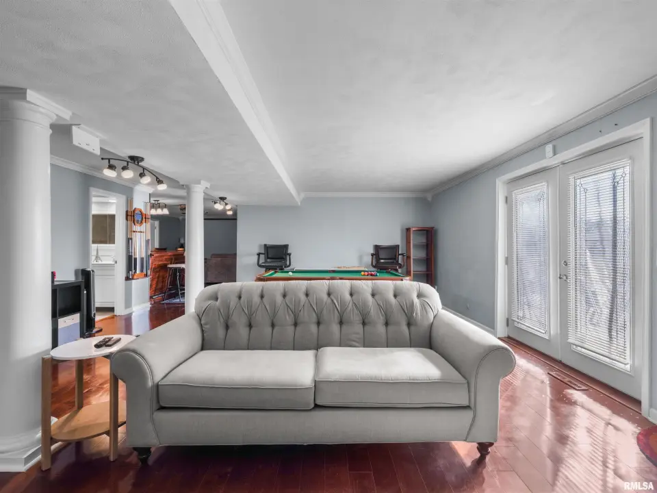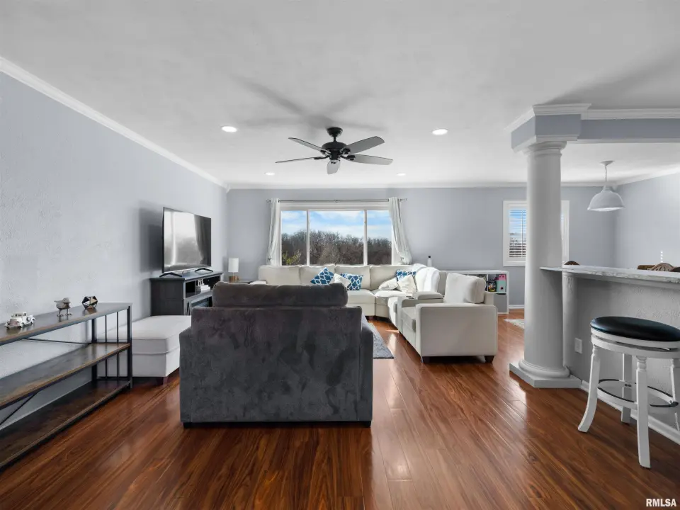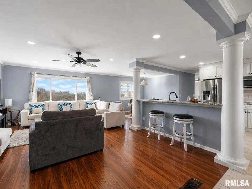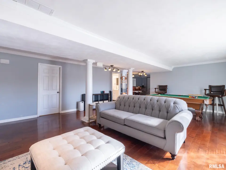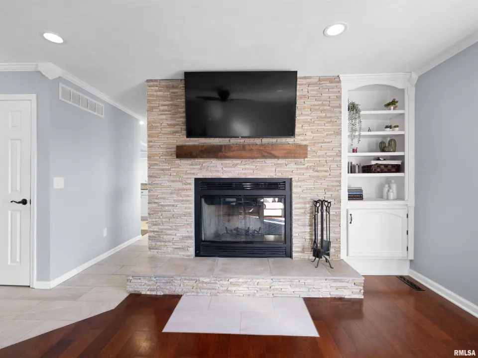 From the moment you arrive, you’ll love the unique stone courtyard that sets the tone for what’s inside. The open-concept main level is filled with natural light and features a spacious living and dining area with beautiful hardwood floors. The fully applianced kitchen offers granite countertops, an island, and stylish cabinetry—perfect for everyday living and entertaining. An additional main-level family room provides a cozy retreat with a fireplace, offering the perfect space to relax or gather. The primary suite includes its own private deck, while additional decking spans the entire back of the home, creating multiple spaces to enjoy the incredible golf course views. The walkout lower level expands your living space with a large rec room, second fireplace, 5th bedroom, full bath, bar/billiards area, and a dedicated home gym. This home is ideal for entertaining or multi-generational living. With an attached garage, thoughtful updates throughout, and an unbeatable golf course location, this home truly has it all!
