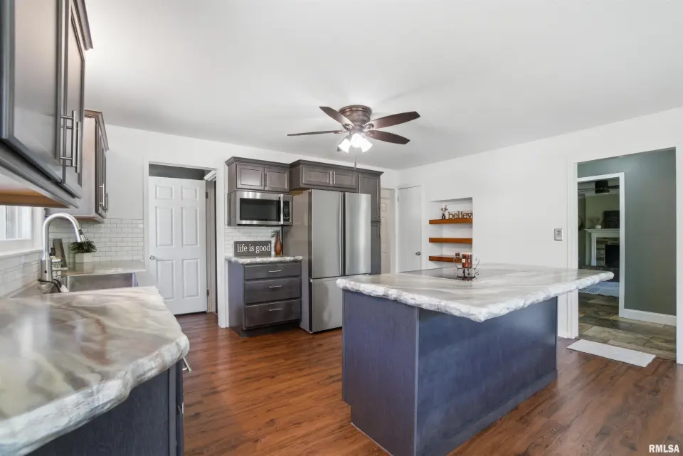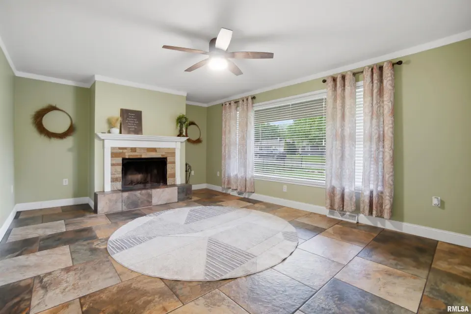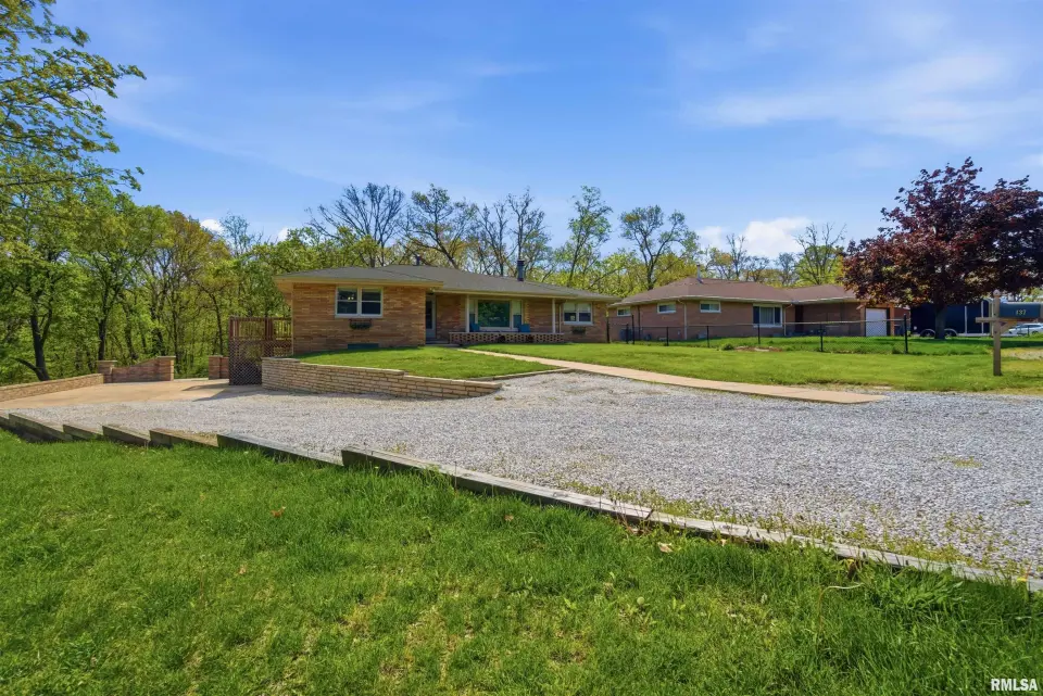 Home backs up to park district woodlands. All brick, 4 bedroom ranch home with outdoor brick fireplace & patio. Updated kitchen in 2024 with epoxy solid surface counter tops! Finished basement with office and rec room. New ceramic shower in basement. Roof new in 2016, new garage doors just installed. Water is provided by community water and is $400/yr unlimited usage! 220 hookup for hot tub.