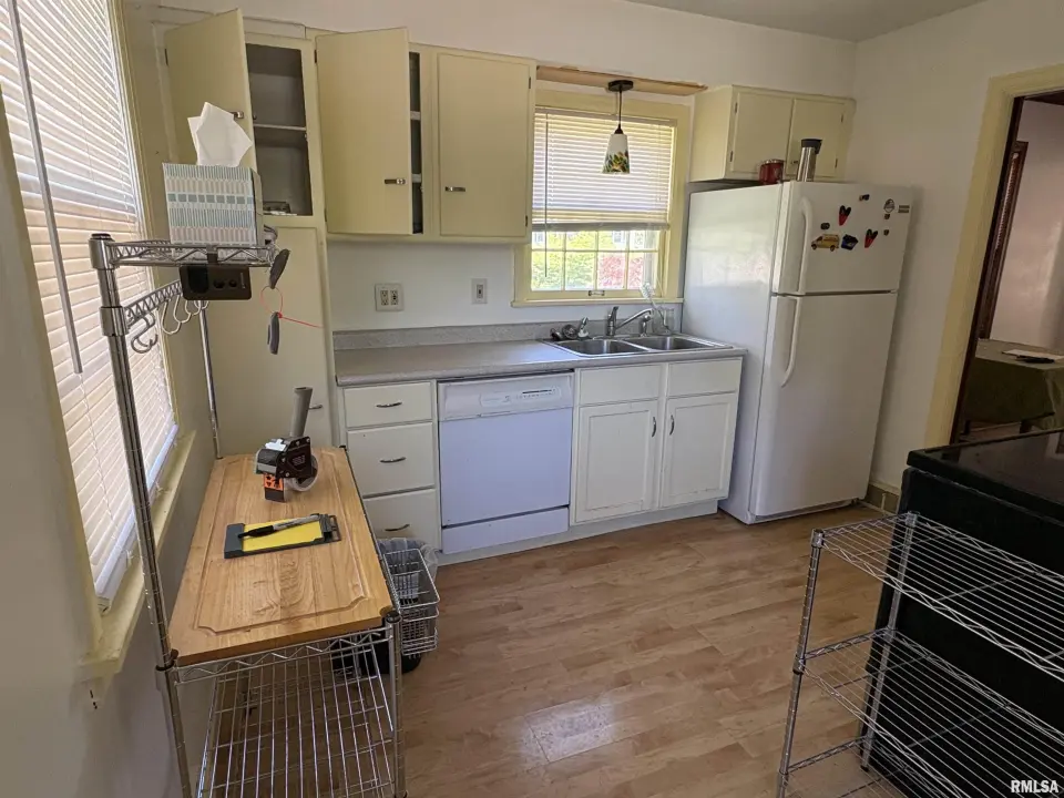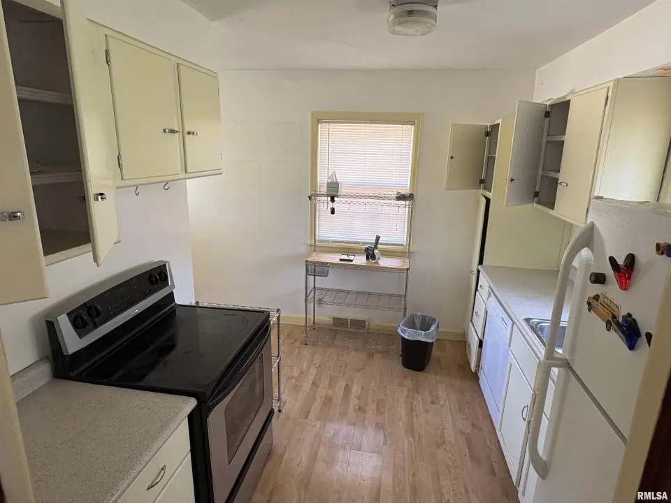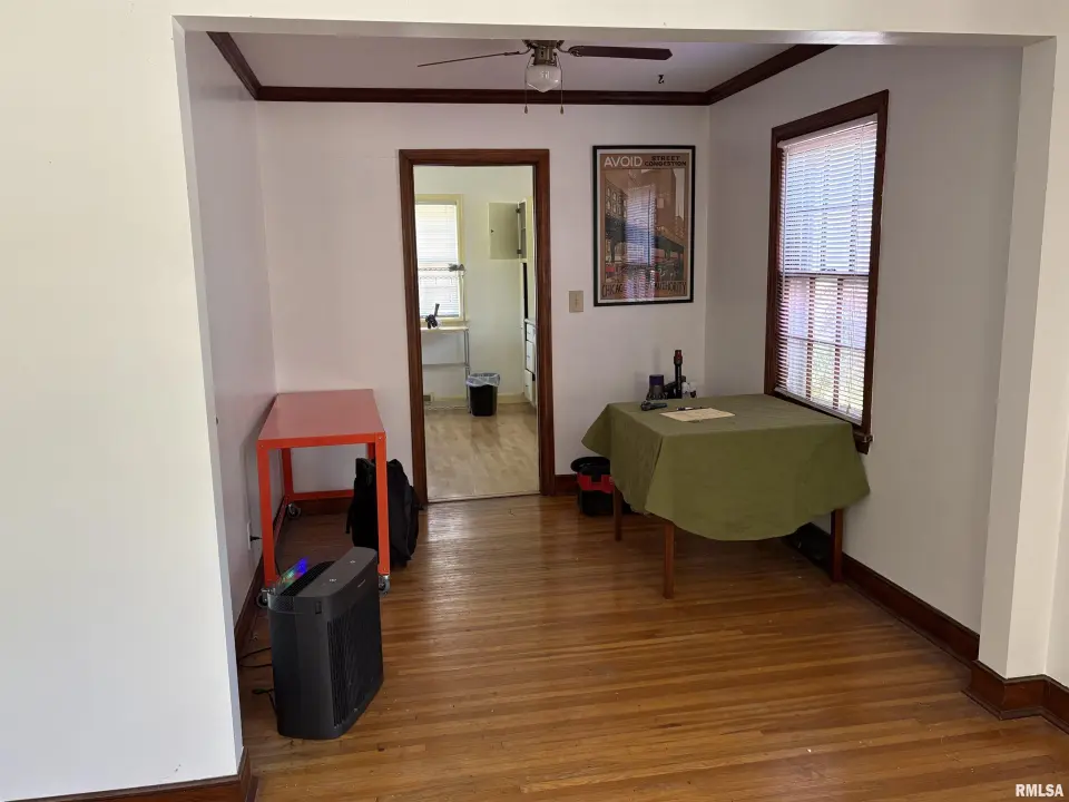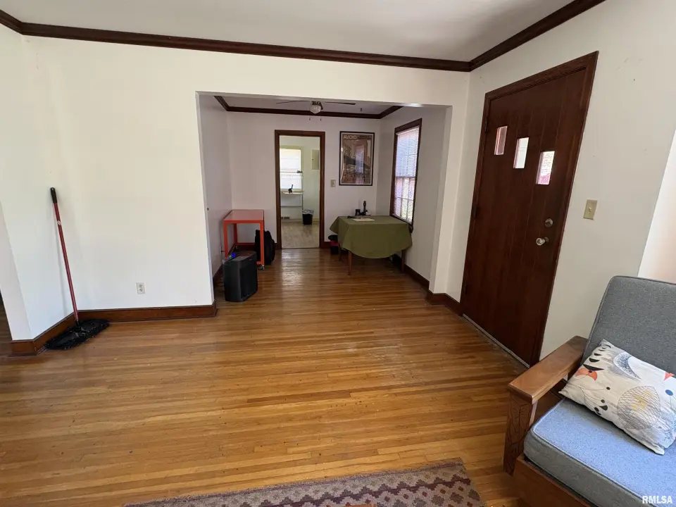 The original wood character with some built ins and some crown molding make this home have tons of potential. Full unfinished basement with comfortable ceiling height. Furnace and central air was replaced in 2018.(Home is in the Old North Normal Historic District).Roll up style generator hook up has been started and all finishing supplies are being left with the home. All appliances and the home and garage is being sold as-is. Cash Only!