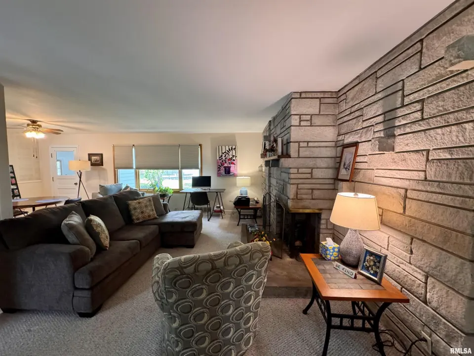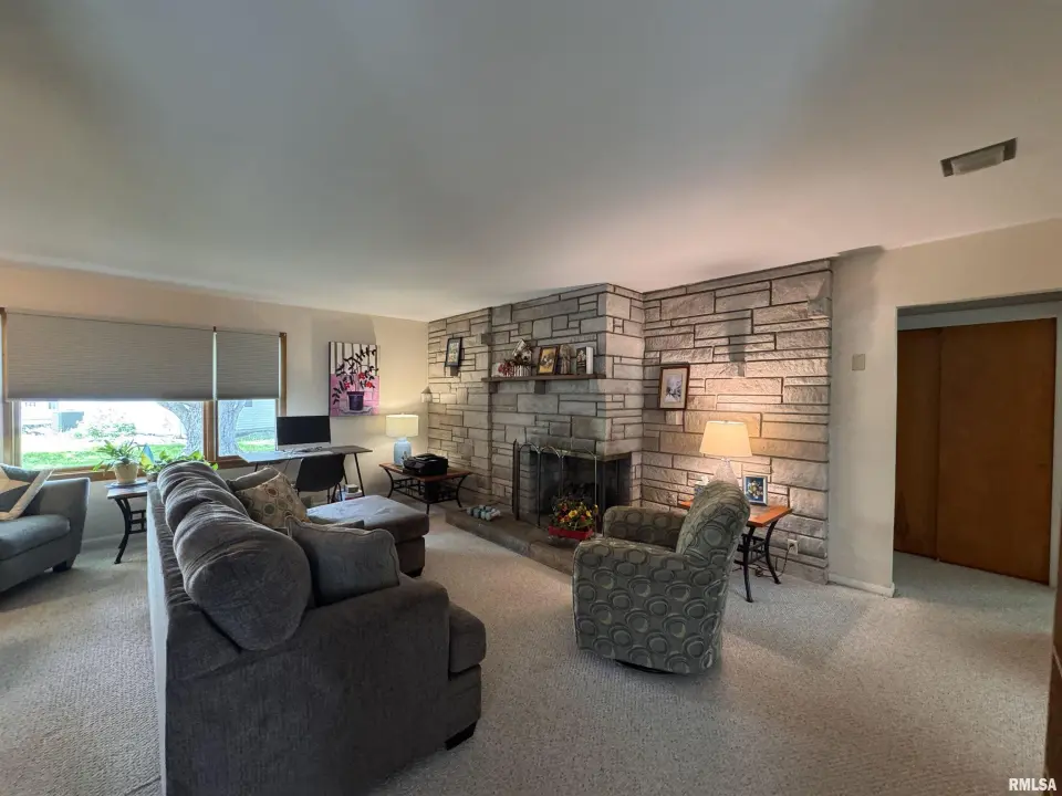 The main level of the house has an open living/dining area with a beautiful stone fireplace, a large window, and a walkout to a three-seasons room. Off the dining room is the kitchen, with lots of cabinetry and a large window above the sink that lets in lots of daylight. The main level has three bedrooms, one of which has a half bath attached, and a full bath. This home has a full basement, currently unfinished, with lots of storage, a laundry area, and potential for additional living space. Many updates have been made over the years, including shingles, sewer line, and HVAC. Call today for more details.